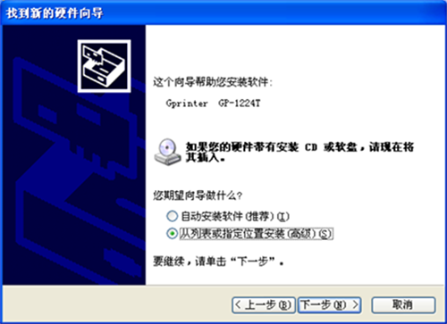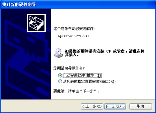 一、电脑内插入光盘,打印机装纸,接好USB线后打开打印机电源,电脑会提示发现新硬件,以1224T机器安装为范例: