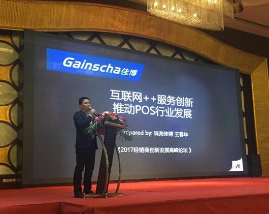 佳博集团旗下珠海盛源信息科技有限公司的王春华总经理在论坛上分享了佳博互联网+相关战略和服务,提到依靠互联网销售的商家正在冲击传统商家的经营。佳博集团董事长创立的佳博蜂巢网络商业平台,可以帮助商家更好认识和应用互联网,使客户更好的应对未来“新零售、新实体”的发展趋势。