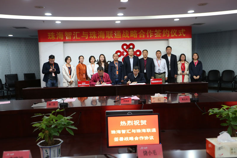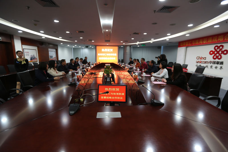 5点正珠海联通饶小毛总经理与珠海智汇总经理李晓波分别讲话,双方达成共识,并共同签署互联网+战略合作协议。在物联万物时代,中国联通与珠海智汇将紧密合作,合力将物联网卡贯穿手持一体化POS终端,送进千家万户!